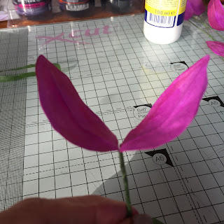 To make a stem of orchids simply make more than one and then tape them together to form your stem. Here's a couple more pics of another stem in a different colour........